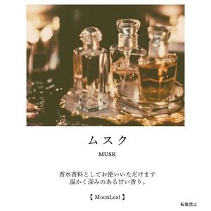 やわらかく上品な香りが広がるムスクの香りです。ほのかな甘さと深みを感じるやさしい香りが、穏やかで心地よい空気を演出します。リラックスしたひとときや、落ち着いた香りに包まれたい時間におすすめです。