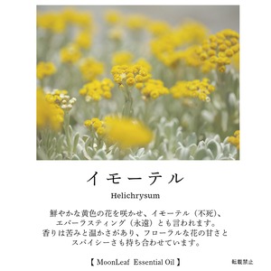 心を癒やすイモーテルの香りが詰まったエッセンシャルオイルです。柔らかな甘さとスパイシーさが調和し、一度嗅いでみればその魅力に引き込まれることでしょう。