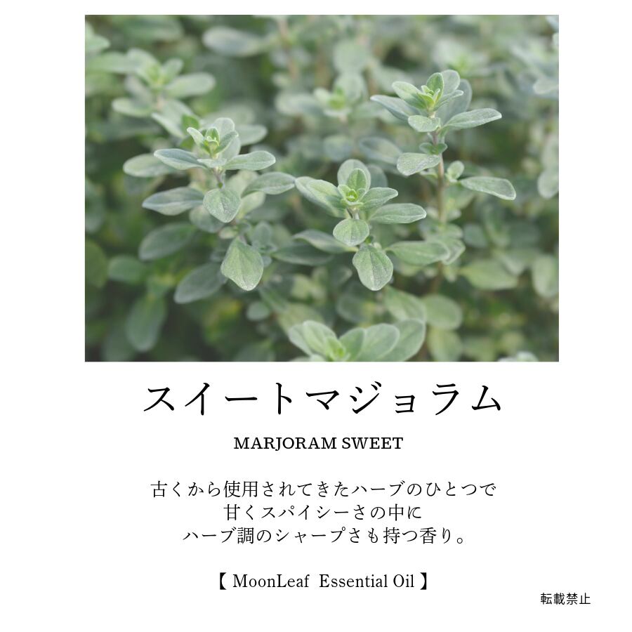やわらかく温かみのある香りが広がるスイートマジョラムのエッセンシャルオイルです。ほのかに甘さを含んだハーブ調の香りが、穏やかで落ち着いた空気を演出します。くつろぎのひとときや静かな時間にそっと寄り添う香りです。