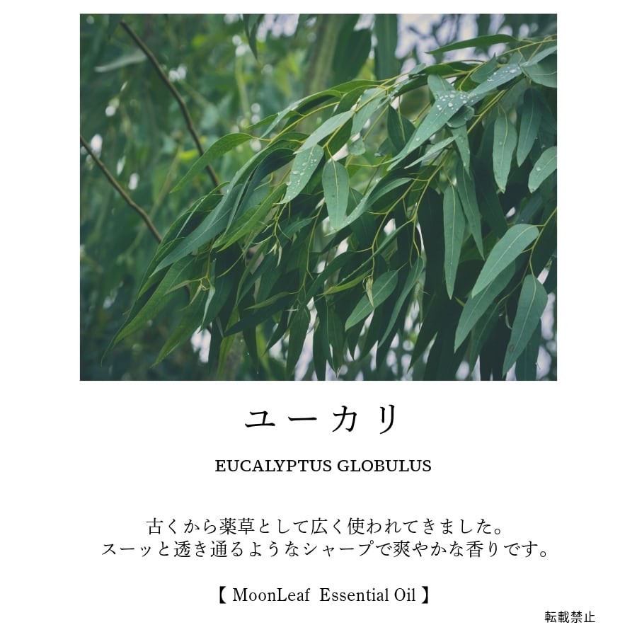 すっきりとしたハーブ調の香りが広がるユーカリグロブルスのエッセンシャルオイルです。清々しく軽やかな香りが、明るく心地よい空気を演出します。リフレッシュしたいひとときや、自然の香りに包まれたい時間におすすめです。